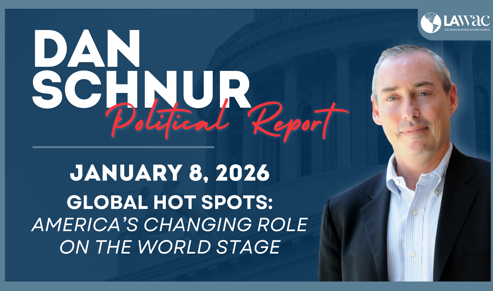 This month, Dan will examine key international crises shaping today’s global order and explore what they mean for U.S. foreign policy. Topics will include Russia’s war in Ukraine, the fragile ceasefire between Israel and Hamas, rising tensions between Venezuela and the United States, the civil war in Sudan, ongoing conflict in Ethiopia involving the Tigray Defense Forces, and recent developments in China. This webinar will provide clear context, thoughtful analysis, and insight into how America’s role in the world is evolving.