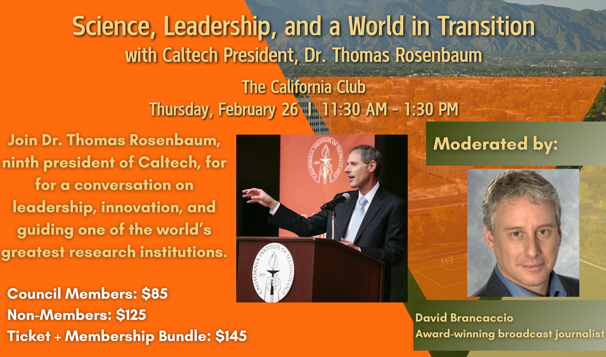 "Science, Leadership, and a World in Transition" with Caltech President, Dr. Thomas Rosenbaum