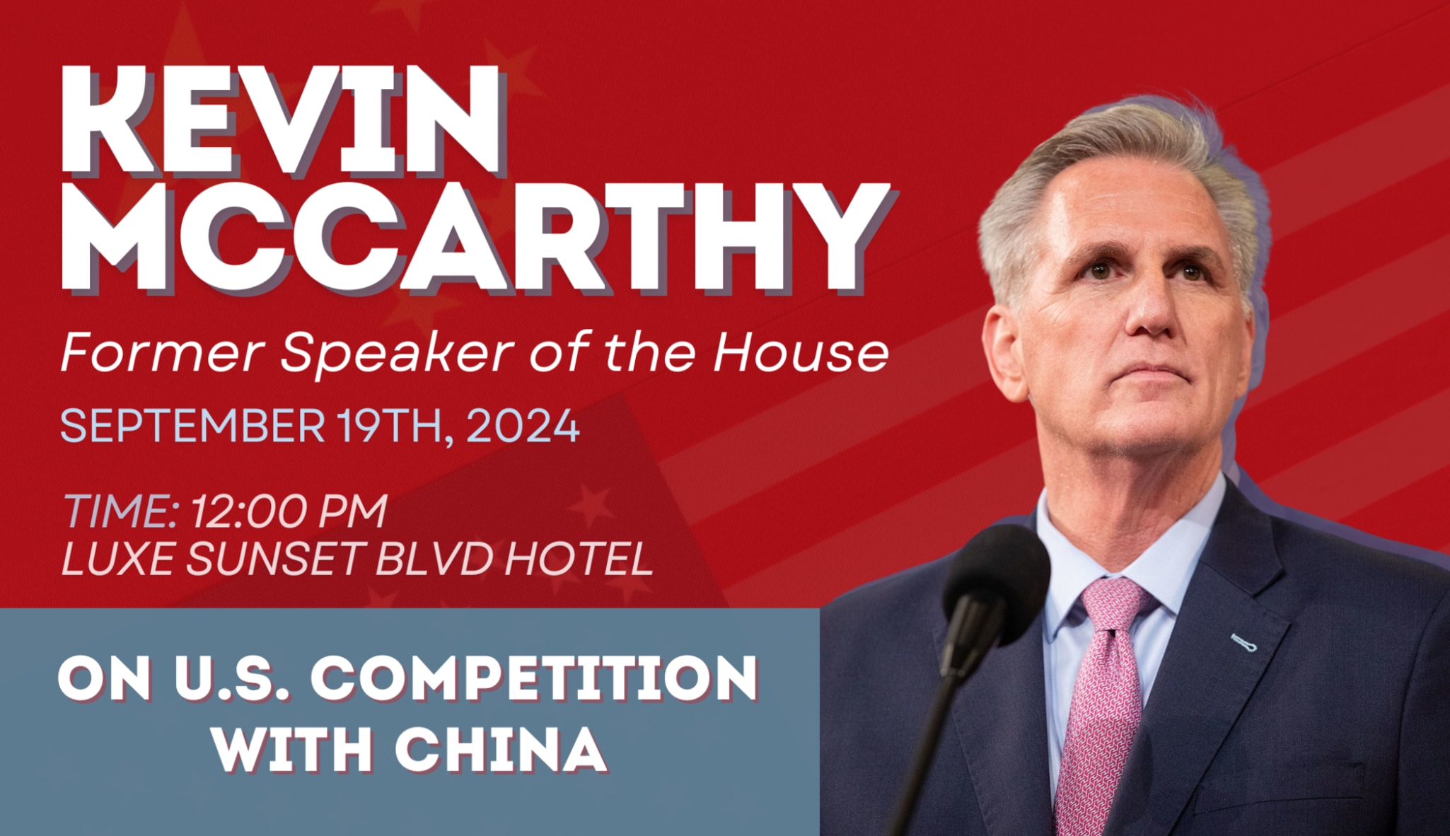 DESCRIPTION:The U.S. faced many changes in 2024 while continuing to evolve on the global stage. In light of this\, the Los Angeles World Affairs Council held a luncheon and discussion with former Speaker of the House\, Kevin McCarthy\, on U.S. competition with China. This program also featured a conversation moderated by former Entertainment Tonight host Mary Hart.\nView the photos from this event HERE.\n\n\nSpeaker: Former Speaker of the House\, Kevin McCarthy55th Speaker of the House Kevin McCarthy is described as a man exuding "true American grit." Prior to his election to Congress\, McCarthy served as the fastest rising Minority Leader in the California State Legislature. In Congress\, he held nearly every elected leadership position in the House Republican conference and served under four Presidents\, during two economic crises\, and through consistent political upheaval while always maintaining his approach to governing as a Happy Warrior. After his election to Speaker\, McCarthy went on to secure $2T in deficit reduction. McCarthy's decade and a half at the pinnacle of U.S. government has imbued him with powerful insights into politics\, leadership\, and values. Throughout his career\, McCarthy fought for a more effective\, efficient\, and accountable federal government. McCarthy's invaluable perspective as a Washington insider\, as well as his sharp insights and analysis\, make him the ideal voice on the future of the U.S.Moderator: Mary Hart Mary Hart\, is best known for hosting "Entertainment Tonight" for nearly 30 years. Her reporting for the show included interviewing nearly every major motion picture\, television and music star of the last 30 years. Mary was inducted into the Broadcasting & Cable Hall of Fame in 1999. She has been honored by American Women in Radio & Television (AWRT) which recognizes those responsible for "exemplary work by and about women in all facets of broadcasting and electronic media." Mary was also presented with the Samaritan Award by the National Association of Broadcasters Education Foundation (NABEF) for her work on behalf of children's charities. Mary is a member of the Board of Trustees for Children's Hospital Los Angeles. Mary sits on the board of Simon Wiesenthal "Museum of Tolerance\," based in Los Angeles and Jerusalem. Mary was honored with the LifeTime Achievement Emmy Award from the National Academy of Television Arts and Sciences. Mary has continued to Host the Palm Springs International film festival for nearly two decades.